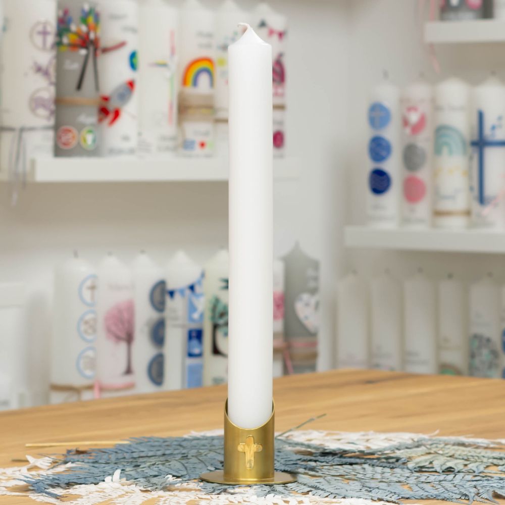 Kerzenhalter mit Kreuz aus Metall NEPTUN gold (4 cm) für deine Kommunionkerze oder Taufkerze