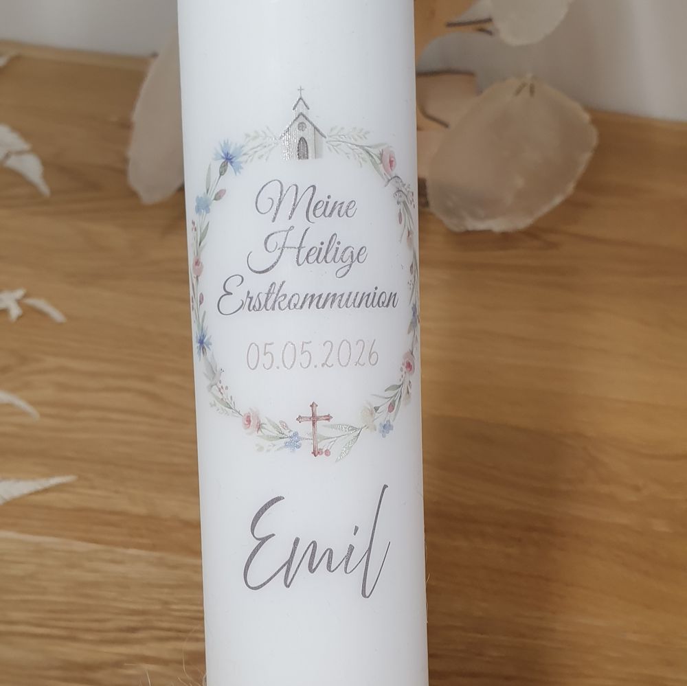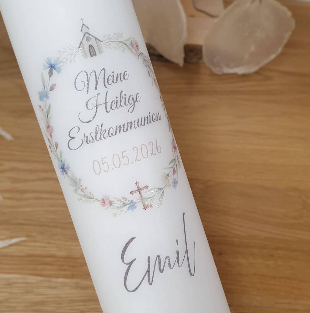 Kommunionkerze mit Designdruck - individuelle, selbst entworfene Motive aus unserer Kreativwerkstatt!