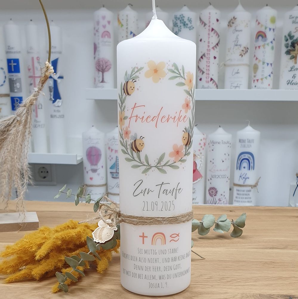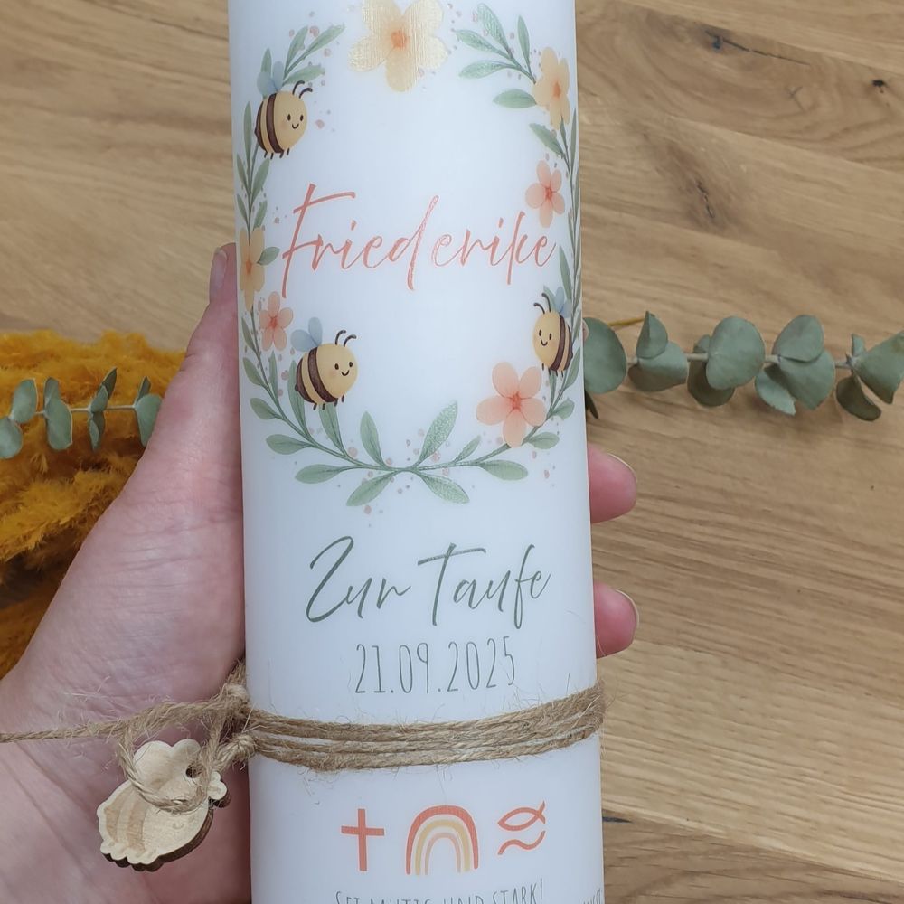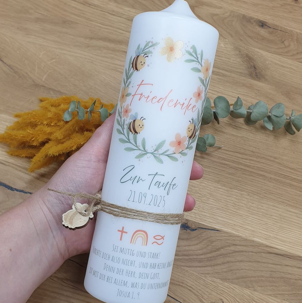 Taufkerze mit Designdruck FRIEDERIKE mit Bienen